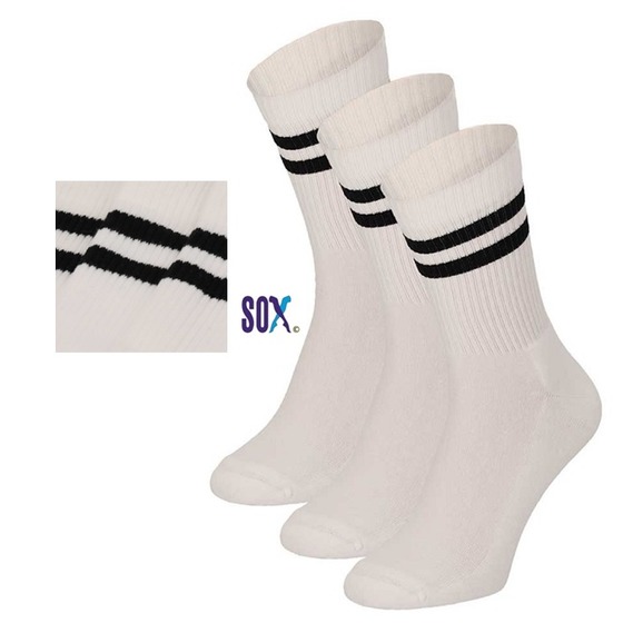 3 paar zachte sokken met streep in wit met badstof zool voor extra zweet absorbatie.